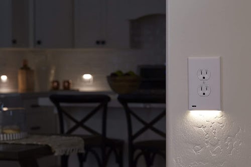 Sold in a two-pack, these easy-to-install outlet cover plates have built-in night lights that turn on when it gets dark, creating a soft glow in hallways and other dim areas. Each cover plate snaps on quickly, and since the LED lights are built-in, both of your outlets will remain free to power other things.