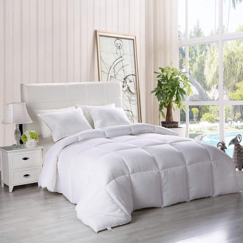 This down alternative comforter has more than 50,000 positive reviews on Amazon, and it's tough to beat its budget-friendly price. The machine-washable comforter is made from 100% microfiber with box stitching that helps keep the soft filling in place night after night. In addition to classic white, the comforter comes in five other colors, including beige and navy.