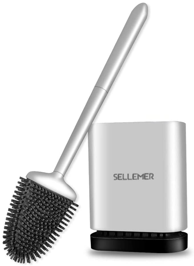 This toilet brush isn’t a brush in the traditional sense. It’s more like a silicone scrubber, but it’s genius because it doesn’t hold water or grab toilet debris. Everything washes away while you clean, and it bends to reach hard-to-access crevices. The sleek caddy has a suspended base with ventilation to keep things dry inside too.
