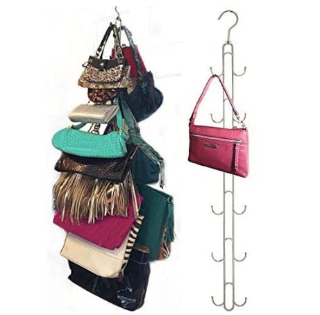 Not only can this organizer support up to 50 pounds, but there are also enough hooks for 12 purses. The top closet hook swivels, making it easy to access every bag — and the tough steel frame is plated with chrome for a sleek appearance. Plus, you can even use it to store backpacks, scarves, belts, and more.