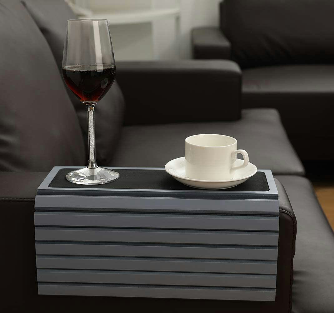 Made from high-quality bamboo, this tray table is designed to sit on armrests so that you have a convenient place to keep drinks. It’s designed to fit any size armrest, and it even works great as a safe place to keep remotes. Choose from nine different finishes, including a rich shade of mahogany.