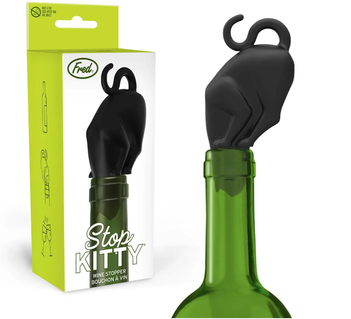A cat-shaped wine stopper that helps preserve the bottle’s freshness