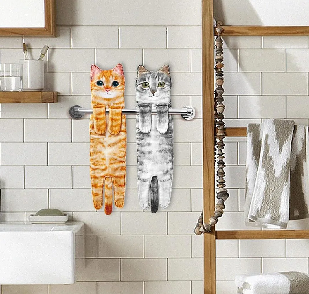 This purrfectly adorable hand towel looks like a cartoon kitty clinging to your towel rack, complete with snap-button paws that keep it from sliding off. Made from absorbent fabric, the towel is equal parts cute and functional, and it comes in dozens of colors — so you could even match the towel to your own cat.
