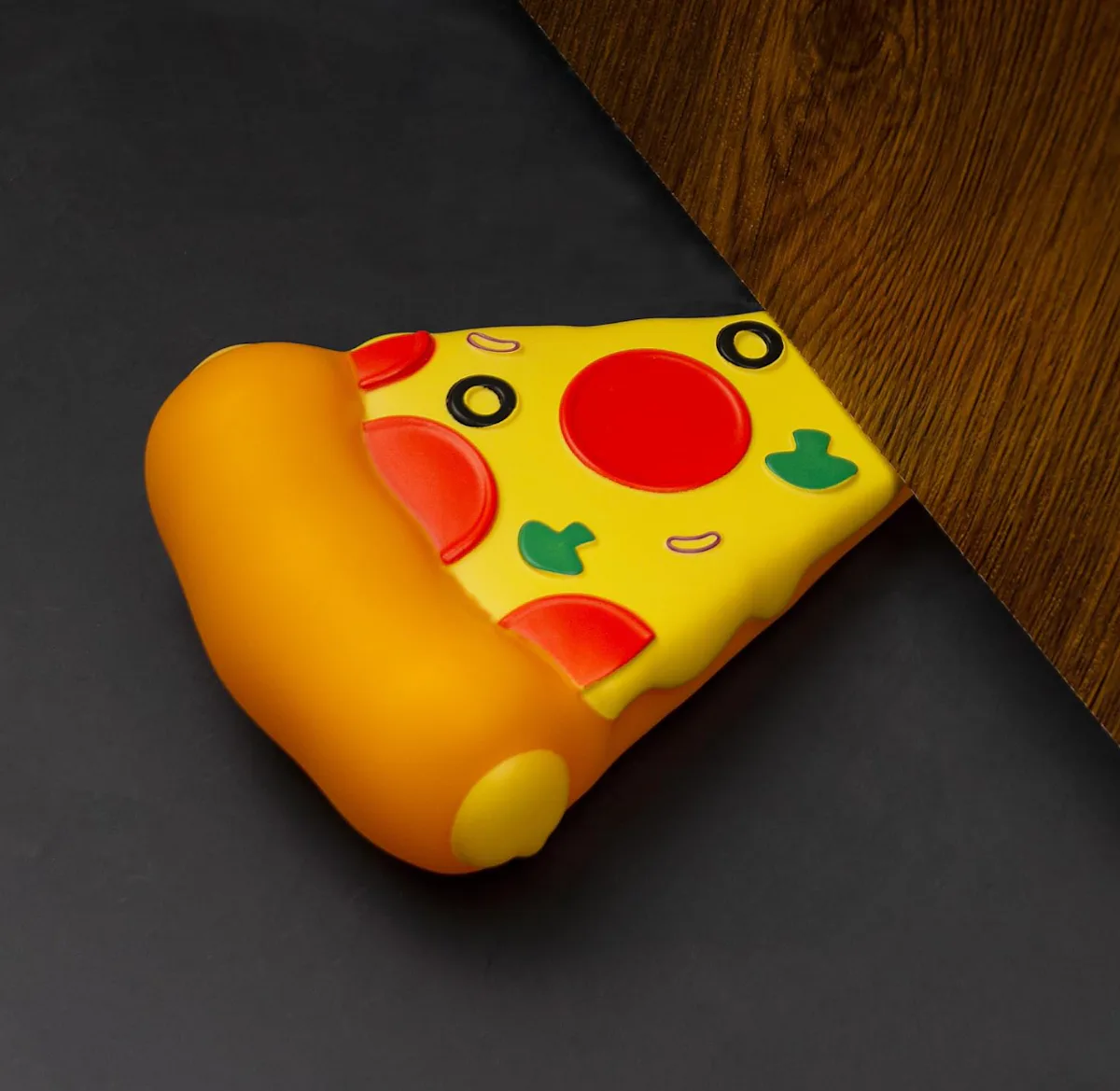 This plastic wedge looks like a gooey slice of pepperoni and cheese, but it’s really a handy lightweight doorstop with a nonslip base. It’s designed to fit snugly under interior doors, keeping breezes, pets, and more from accidentally pushing them shut. Fun and functional, the doorstop doubles as quirky desk or shelf decor when not in use.
