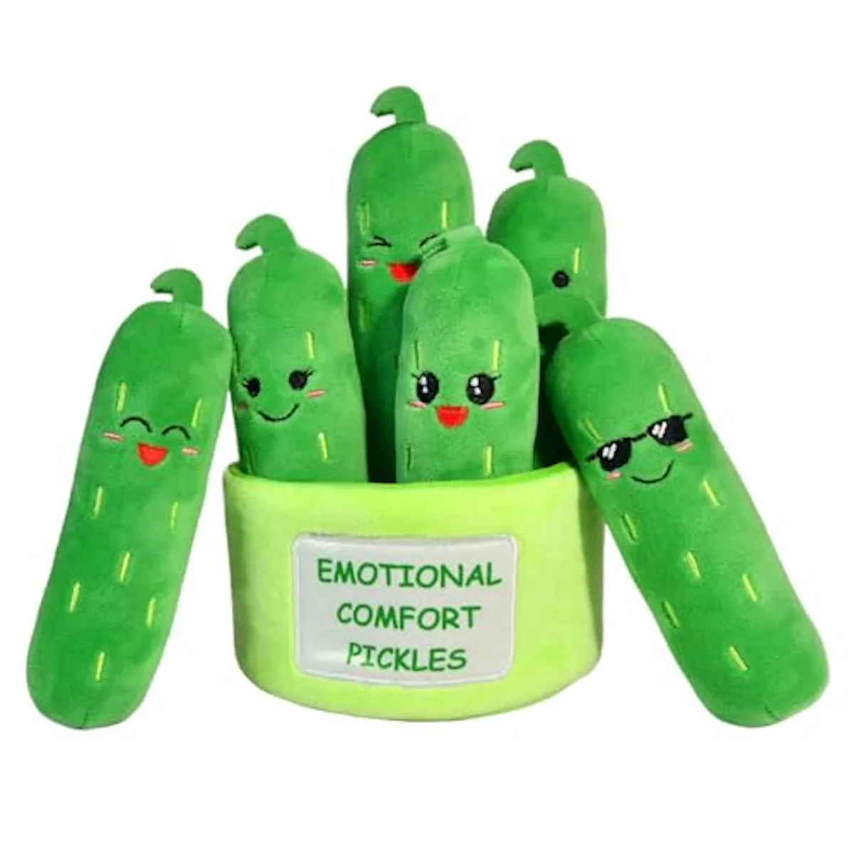 Amazon -When life’s got you in a pickle, these plush pickles have your back. This set includes six mini stuffed pickles, each with a different silly face and personality, tucked inside a soft pickle jar embroidered with comforting phrases. The plushies are squishy, adorable, and perfect for quirky desk decor that will make you smile.