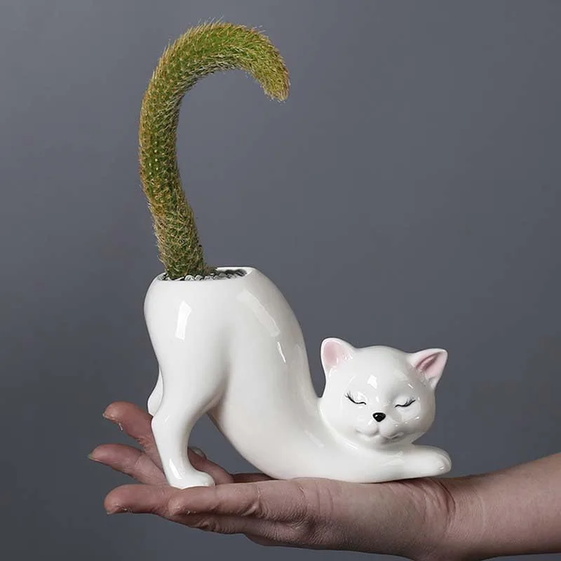 This little ceramic kitty lets you plant your favorite succulent to act as a tail. With a drainage hole and removable plug, the pot is designed to keep plants healthy while adding a playful touch to desks, windowsills, or patios. Lightweight yet sturdy, it’s perfect for herbs, cacti, or flowers, and it makes a sweet gift for plant lovers.