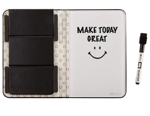Made with tough, tempered glass, this dry-erase pad is resistant to scratches and dents. There’s a kickstand in the back so that you can prop it up while you write — and the hardcover protects the glass while it’s packed in your bag.