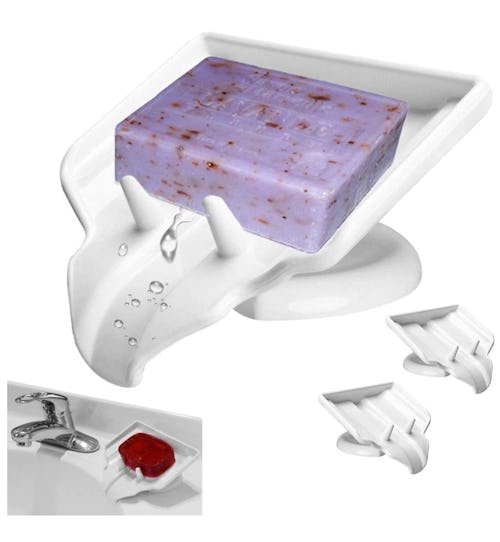 Letting your bar of soap rest in a puddle will cause it to deteriorate faster — so grab this dish. The slide in the front siphons away excess water to help your soap last longer, or you can even use them to hold drying sponges.