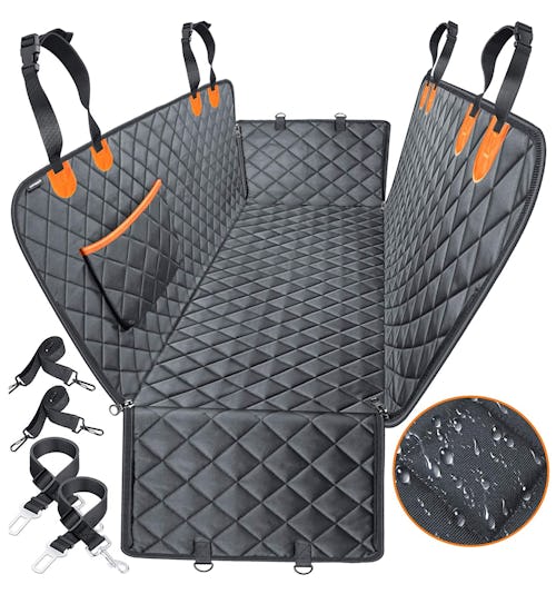 I have this cover over the backseat of my car for whenever my dog comes with me for a ride. It loops around the back and front headrests to stay in place, while the grippy bottom helps keep it from shifting around as you drive. Plus, I can tell my dog prefers riding on it instead of just sitting on the bare seat.