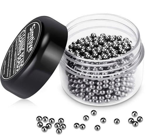 Pour these beads into any oddly shaped glassware with a little soap and water, then swish them around; they'll slowly etch away dirt from the inside without leaving behind any scratches. Each bead is made from rust-resistant stainless steel, and they work particularly well with water pipes.