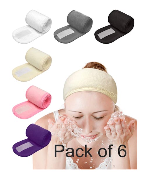 Don't let your hair get swept into your skincare routine — wear one of these headbands to keep your face clear from any flyaways. One size is made to fit all, as the Velcro closure lets you adjust how tightly they fit. Plus, they also work great for absorbing sweat when exercising.