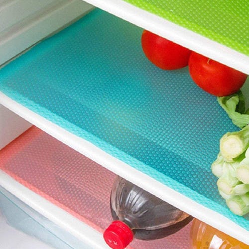 Contrary to belief, hundreds of people are excited about liners for the shelves in their refrigerators. These mats are easy-to-clean and colorful — and people are using them to color-code the fridge shelves while keeping the surfaces dry and clean. They can even be used to help keep produce fresh.