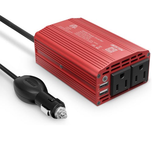For camping, road trips, and charging everyone's gear on the road, many Amazon customers love this power converter that turns a car lighter into two standard outlets and two USB plugs. It has an aluminum allow body and a 24-inch cord, and it'll quickly charge two devices at once. There's even a cooling fan along with a power light so you know it's working.