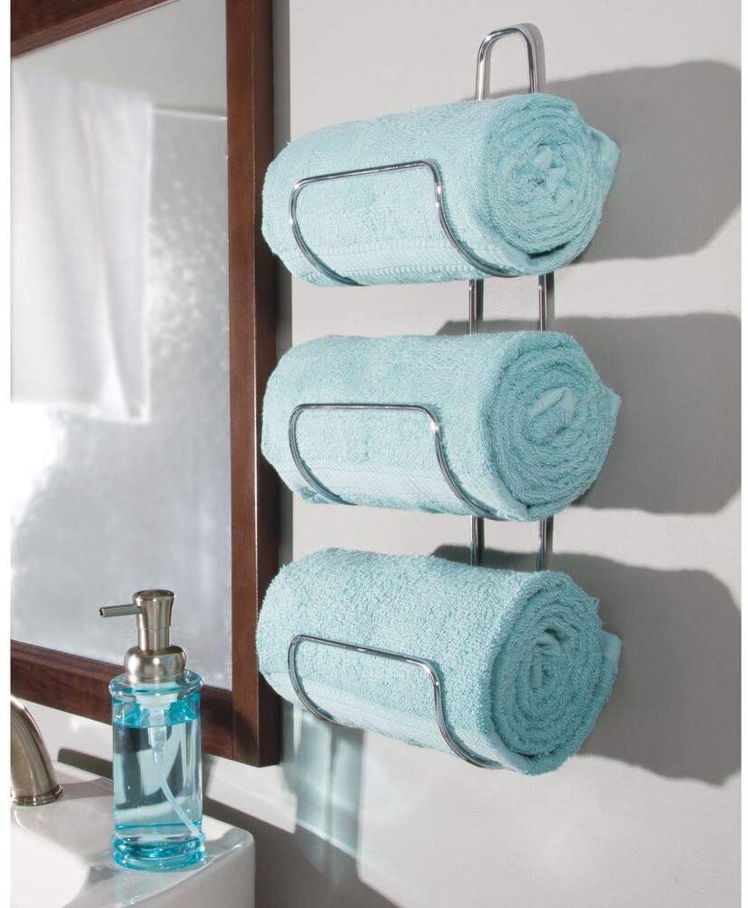 Store your hand towels right where you will reach for them and show them off at the same time by mounting these two three-tier towel racks to the wall near the sink. Hang them side by side, stacked, or in different bathrooms. They come in six finishes.