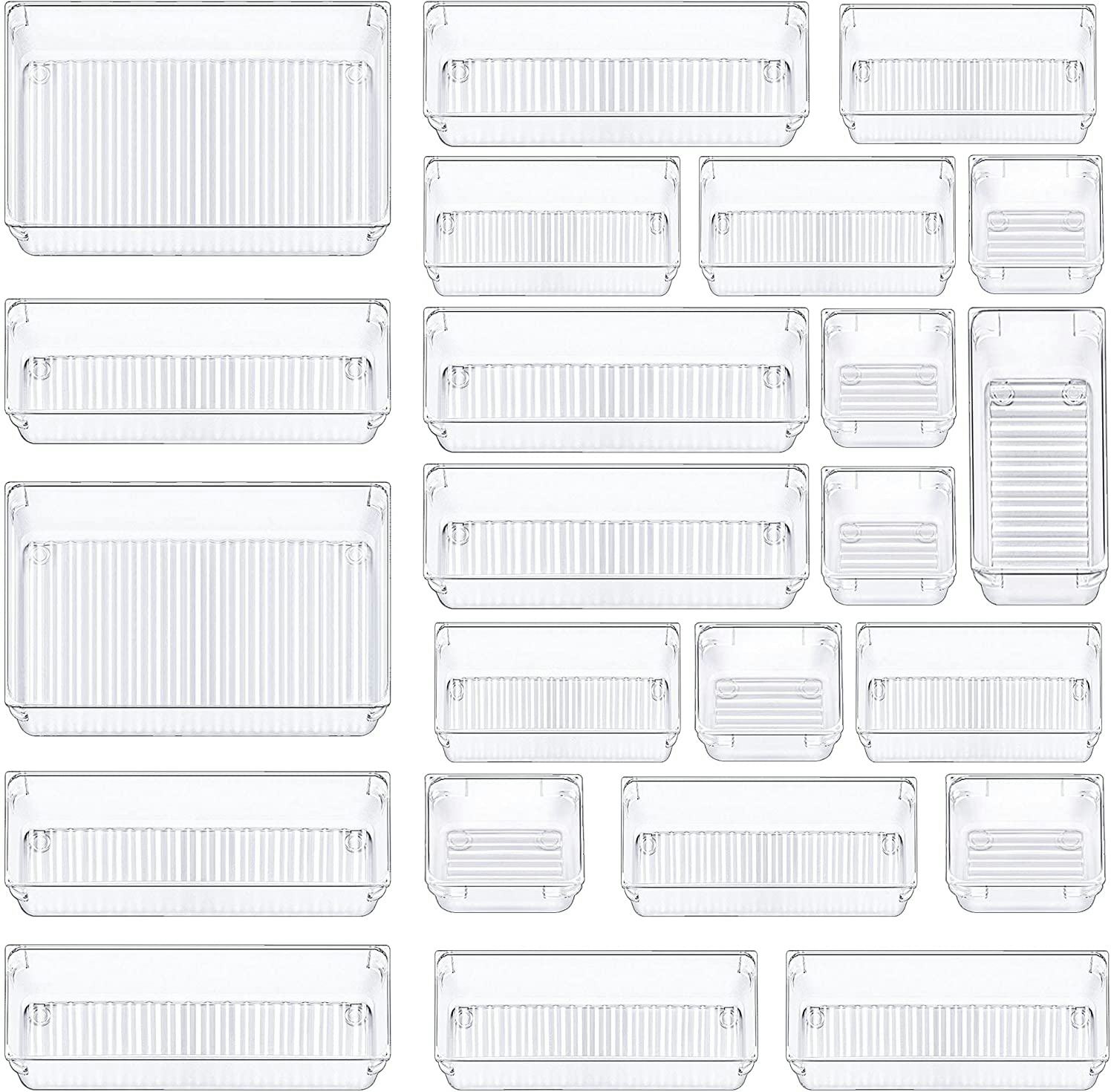 32. A set of drawer organizers for cosmetics or office supplies