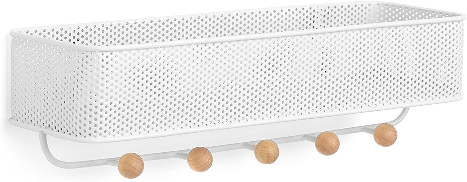 You’ll never lose another important bill once you install this wall shelf system that gives a dedicated spot at your entryway to set down mail, keys, and the dog’s leash, so you always know where to look for them. With five wooden hooks and a roomy basket for your mail and wallet, this shelf will keep everything important handy.