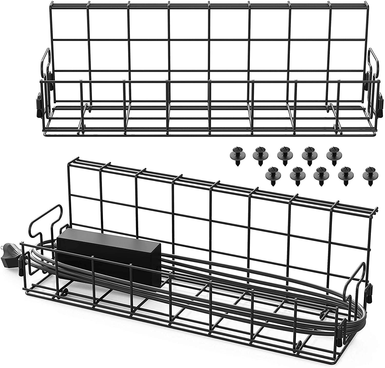 Instead of letting the power strips and everything that plugs into them create an ugly mess on the carpet, mount them under your desk and keep everything tidy and within easy reach. This two-pack of organizers screws to the underside of your desk and holds power bricks, wires, and power strips, even providing a rack to wrap wires around.