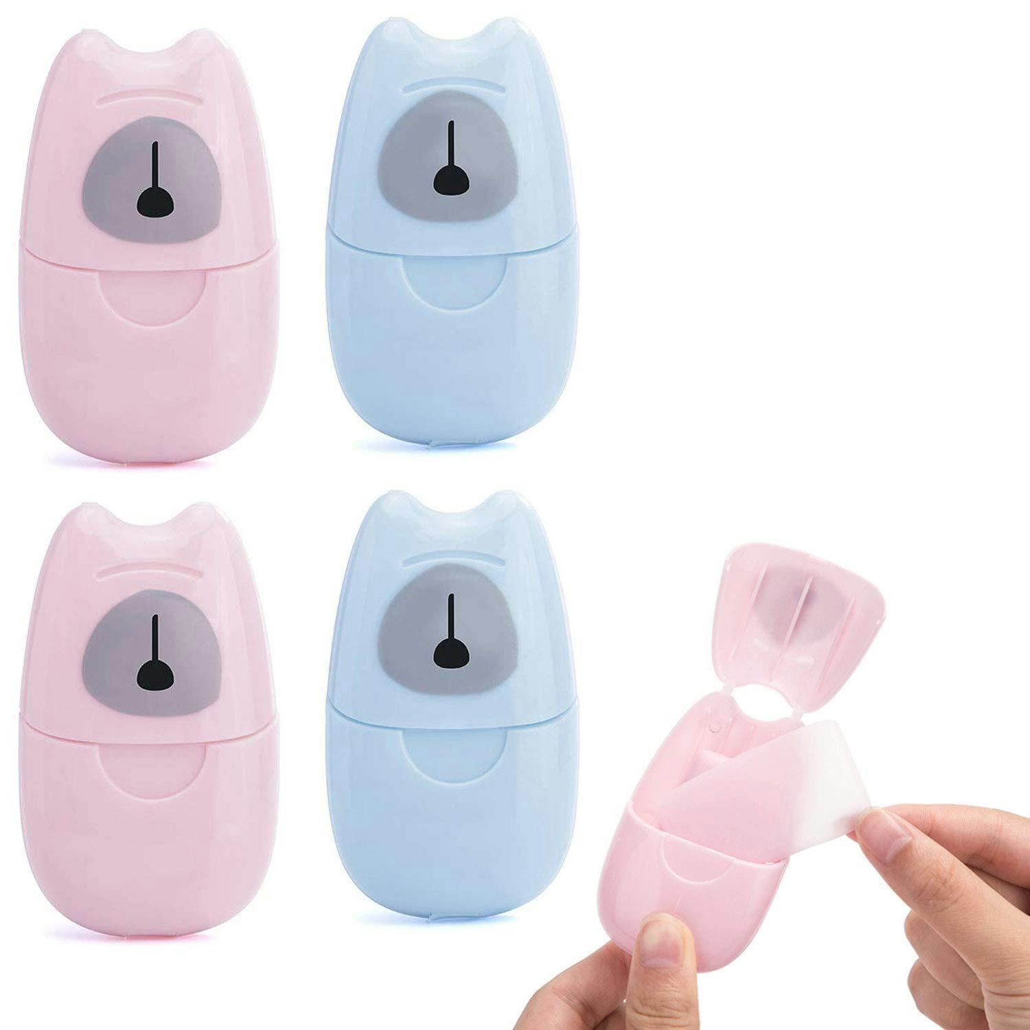 Toss these soap papers into your bag or purse for an easy hand-washing option on the go. Simply wet them, rub them onto your hands until foamy, and then rinse. The set provides 200 soap sheets distributed into four portable dispensers.