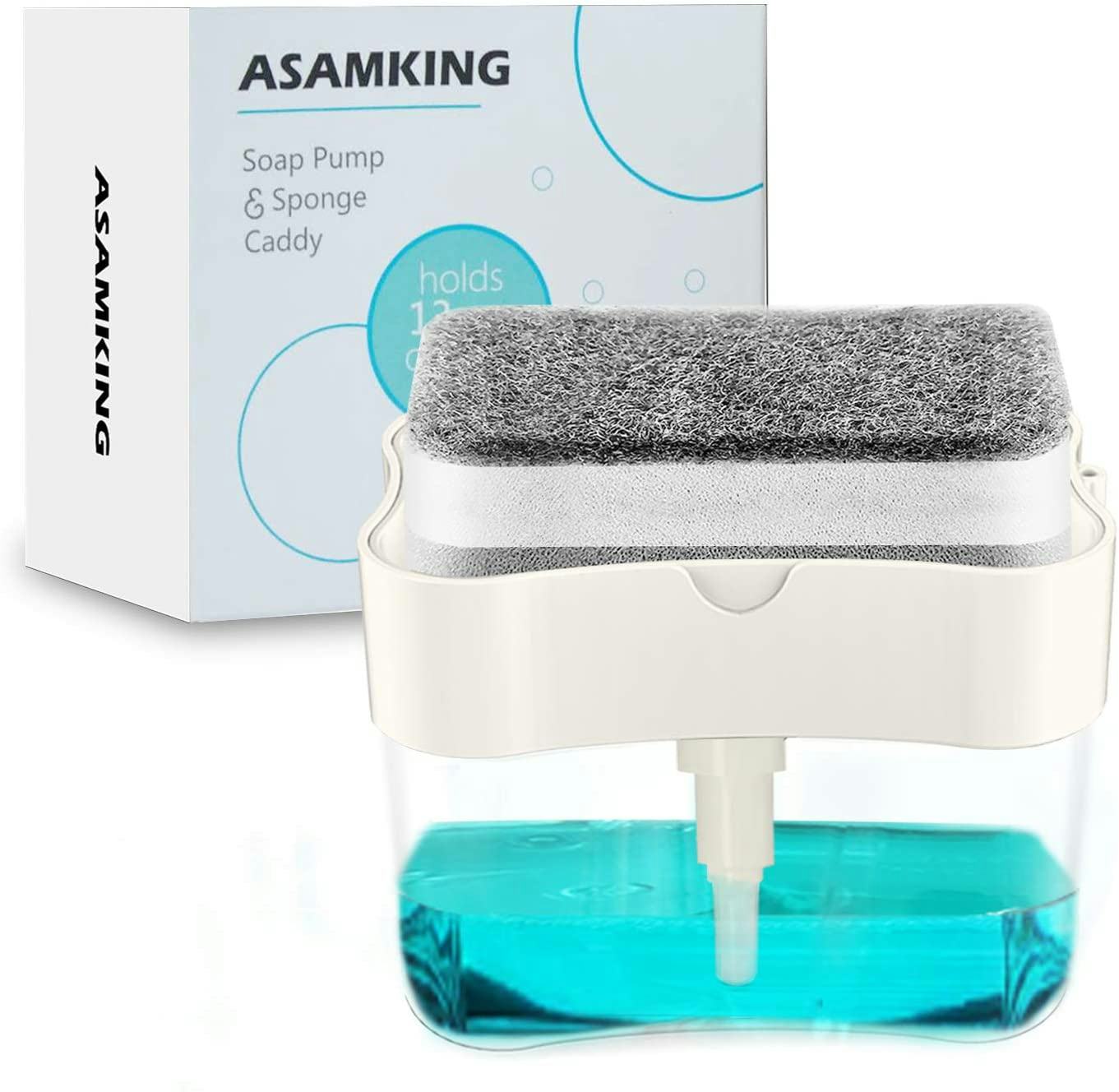 This dish soap dispenser stores your sponge and allows for one-handed release of dish soap. The 13-ounce capacity is large enough to get you through a few washes before refilling. It also comes with a sponge holder and three quality sponges as a bonus.