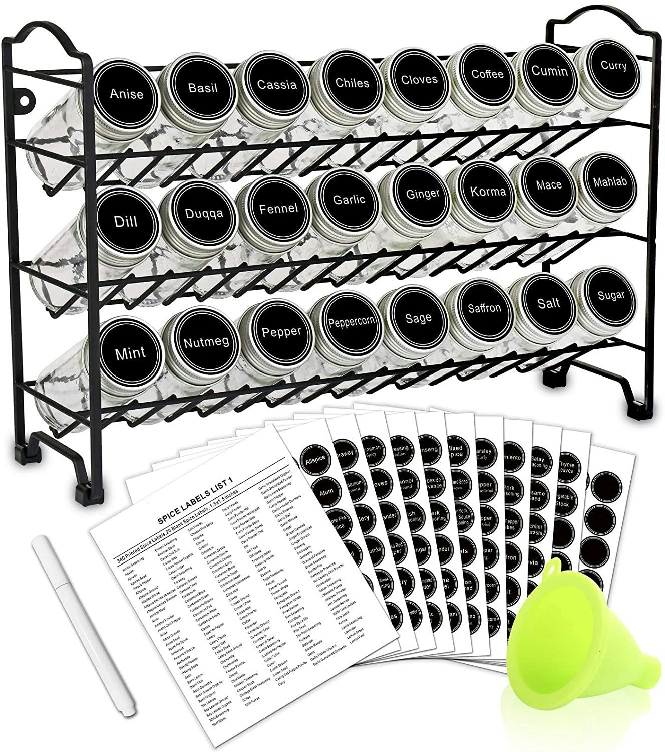 15. This spice rack that comes with labels & a funnel