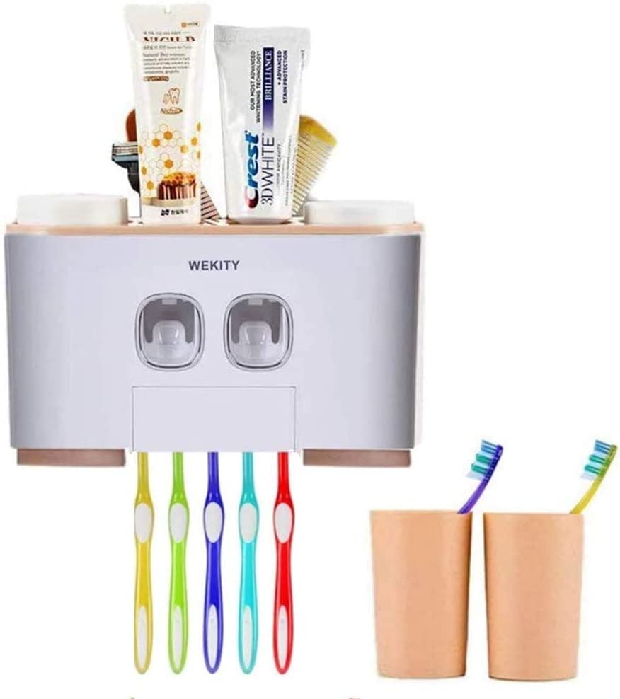 18. This toothpaste dispenser & holder automatically squeezes the perfect amount of toothpaste