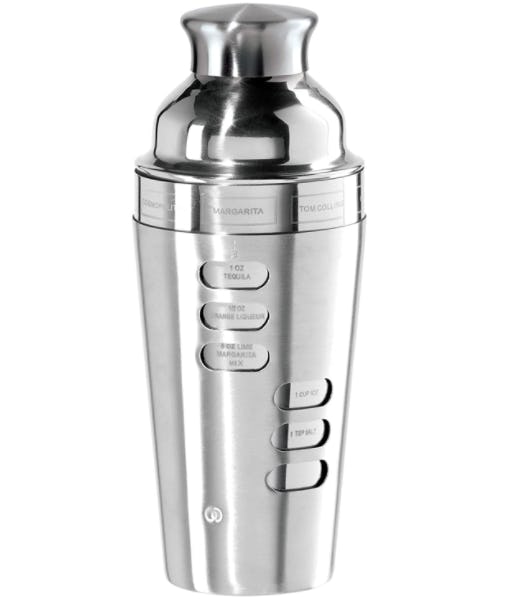 Here's a nifty cocktail shaker with eight popular drink recipes inscribed into the sides. Simply twist the base to find the corresponding ingredients for margaritas, cosmopolitans, mojitos, and more. It's made of durable stainless steel and comes with a built-in strainer.