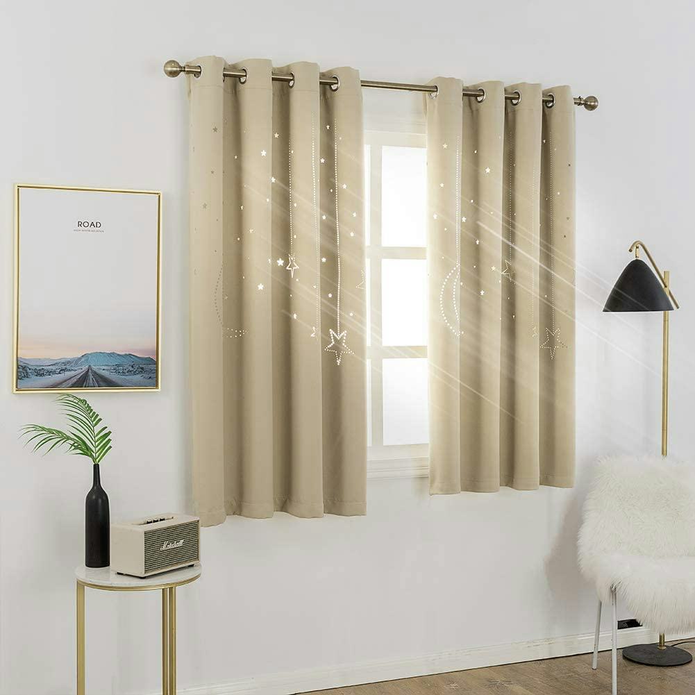 Get the subtle simulation of a starry sky while still filtering out bright light with these blackout curtains. The triple-weave fabric blocks out up to 95% of sunlight except in the laser cutouts design that reveals a starry motif. Bonus: these curtain panels are easy to install and machine-washable.