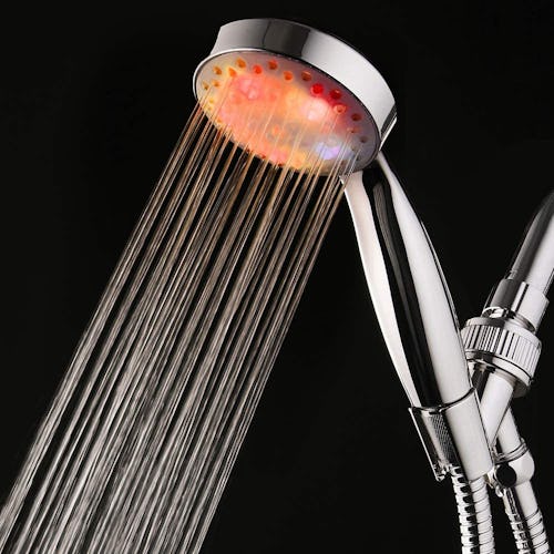 This handheld LED shower head has seven color-changing lights to create a full sensory experience while you shower. The lights are powered by running water, and the polished chrome shower head has self-cleaning silicone jet nozzles, so it's easy to install and requires no more maintenance than a traditional shower head.