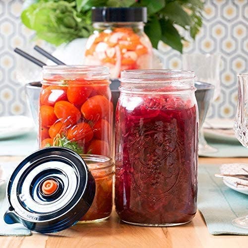 Make your own sauerkraut, kimchi, pickles, and more with these easy-to-use fermenter lids. The three lids screw onto your wide-mouth jars (sold separately), and they're specially designed to let gas escape but keep mold and bacteria at bay. Each lid also a built-in date tracker, so you can time fermentation perfectly, and an easy-release tab to quickly remove the lid when your food is ready.