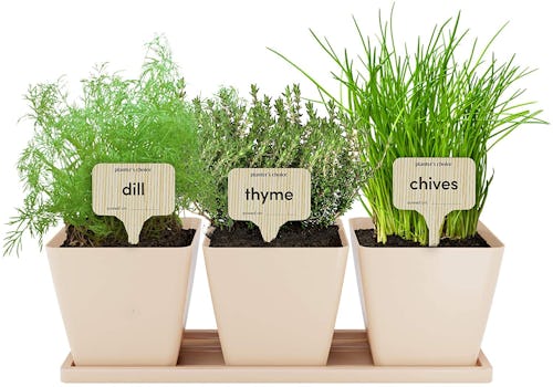 With this indoor herb growing kit, you can exercise your green thumb while cooking meals that are next-level fresh. The set stocks your kitchen with all the essentials: three high-nutrient soil discs, nine reusable pots, and nine seed packets for growing everything from basil to parsley to thyme. Plus, there are bamboo markers to boot, so you know exactly what's popping out of the soil first.