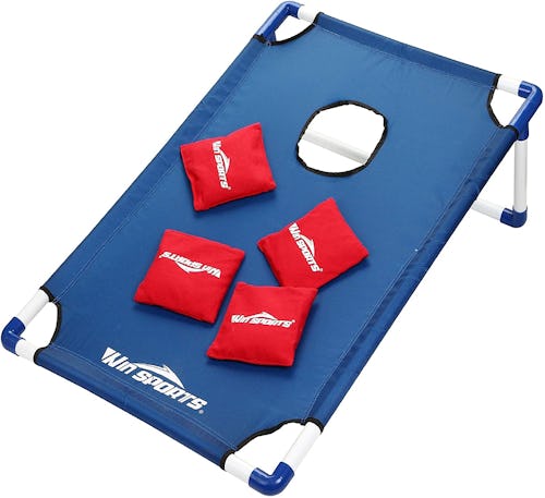 Spend the afternoon in the backyard with this cornhole set that comes with two boards, eight bean bags, eight stakes, and a convenient carrying case. The boards collapse flat for easy storage, and since they're made with double-lined duck cloth, they'll stand up to rain if you forget to haul them in after you're done playing.