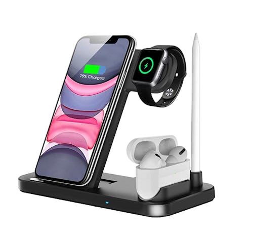 This wireless charging station is a must-have if you own a lot of Apple products. It features a slot to charge your iPhone as well as a small handle to hang your Apple Watch while it charges up. There's even a space for your AirPods to charge while they're in their case, as well as your Apple Pencil. And the best part is you just have to snap them into place without messing with a bunch of cords.
