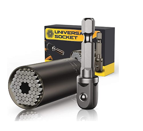 Fixing things just got a whole lot easier with this genius socket tool. Attach it to any power drill or ratchet wrench that you already have, and instead of trying to find the best socket for your current project, this universal tool can fit around and grip most nuts. That's right, and even ones that are broken, stripped, or have an odd shape, so ditch the rest of your bulky socket set for good.
