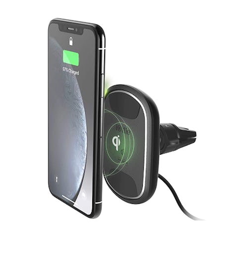 One reviewer writes that this magnetic charger "mounts easily to the vent, the magnets hold the phone well and the charging works great." All you have to do is clip it to your car's vents and plug in the micro USB adaptor. Your phone sticks to the magnet to keep it in place while it's charging at the same time.
