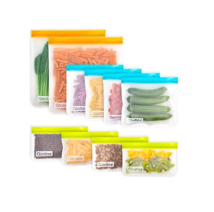These food storage bags come in a pack of 10, and you can reuse them over and over again. You get two gallon-size bags, four sandwich bags, and four snack bags in one set. Each bag is made from BPA-free, food-grade plastic that won't deteriorate over time. You can even toss them into your dishwasher between uses for an easy clean-up.
