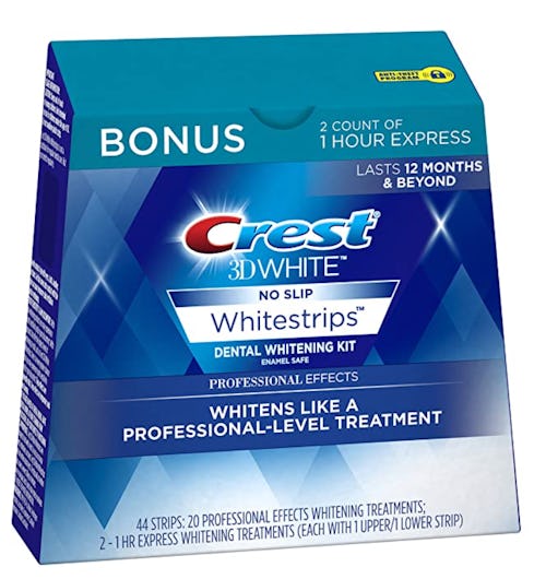 Over 35,000 reviewers swear by these whitening strips for a professional-level glow at a fraction of the price. They come in a pack of 44 strips — 22 for your bottom teeth and 22 for your top teeth. Each strip is already pre-loaded with Crest's signature whitening formula. All you have to do is stretch to apply the strip directly to your teeth, then wait for 30 minutes. You get a mega-watt smile with only one treatment, and this kit comes with enough treatments to last you well over a year.