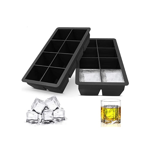 You don't need 10 ice cube trays — you just need one that is designed to provide more icy goodness in your drink. This silicone ice cube tray delivers: each tray makes eight oversized square cubes that will take longer to melt in your beverage. The trays come two in a set and can withstand extreme temperatures of -40 to 480 degrees Fahrenheit, plus they're safe in the microwave, dishwasher, oven, and freezer.
