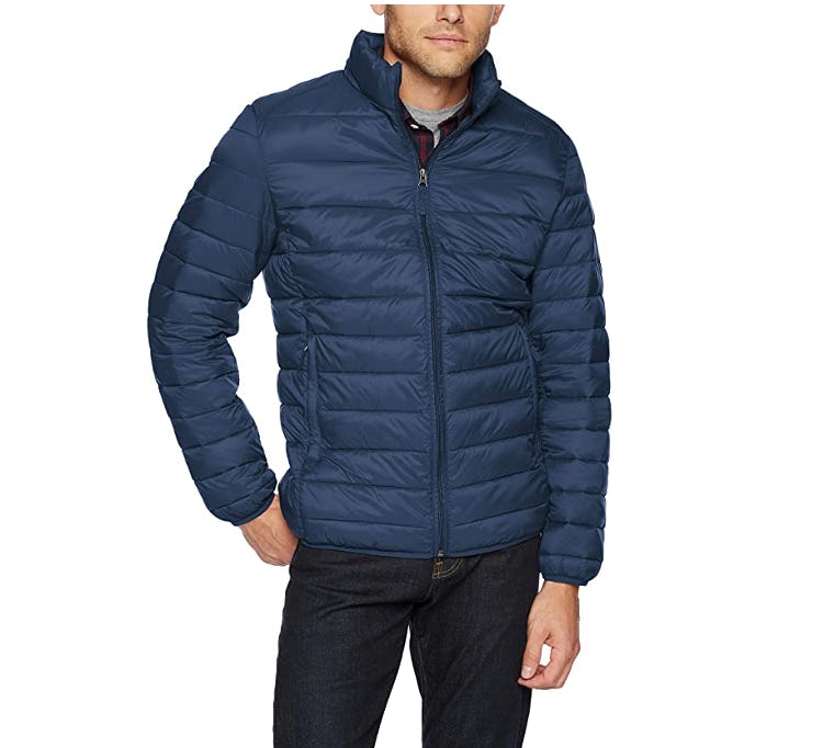 Stay warm, while also being able to move comfortably, with this lightweight water-resistant puffer jacket. The zippered jacket has zippered pockets, a nylon shell, polyester fill, and it's machine-washable. It comes in 13 colors and prints including solid shades, camo, and marble.