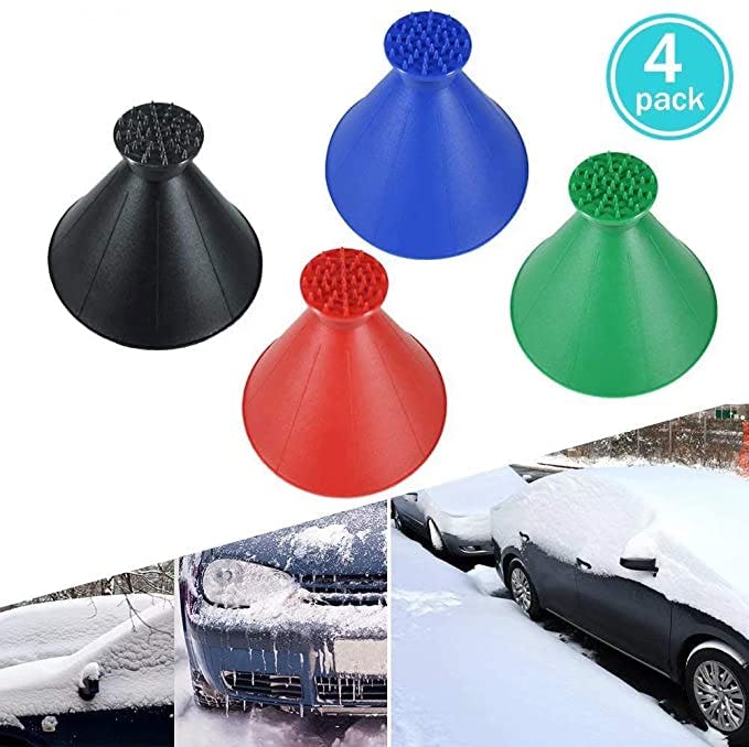 These cone-shaped windshield ice scrapers fit in the palm of your hand and remove large chunks of ice at one time. The double-sided tool has miniature spikes on one end that you can use to break up ice and an extra-wide opening on the other for clearing off snow and ice from windshields and windows. It comes in a money-saving four pack and doubles as a funnel.