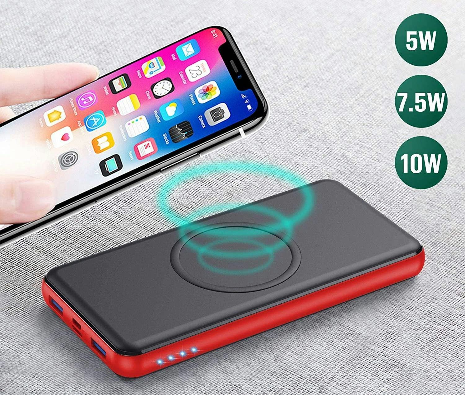 There's no need to carry around charging cables when you have this power bank, which can power up to four devices at one time — one via the wireless pad and three via cables. It features two standard USB ports (one of those is a quick charge port) and one USB-C port. The bank is compact enough to fit in your pocket and conveniently plugs into a wall outlet to reduce clutter.