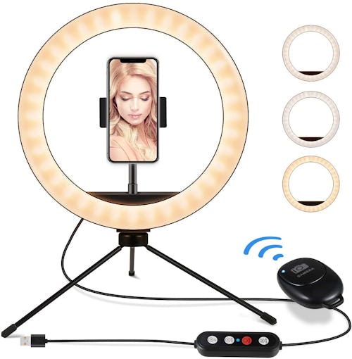 If you're spending a lot more time on Zoom or FaceTime, you might want to upgrade your lighting setup with this ring light and tripod that'll help do away with any weird shadows in the frame. The light is designed with 10 brightness levels and three tones — warm white, cool white, and natural white — and it comes with a Bluetooth remote for taking photos.