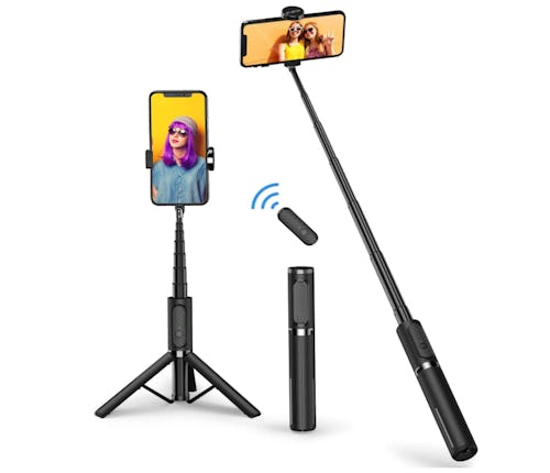 Set yourself up for better photos and video calls with this selfie stick and tripod duo. Both the selfie stick and tripod are extendable and angle-adjustable, and the set comes with a Bluetooth remote that syncs to your phone, so you can snap a photo or roll camera from up to 33 feet away.