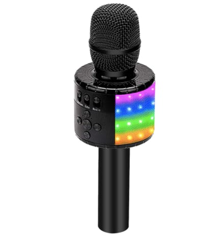 A Bluetooth-enabled karaoke microphone with LED lights