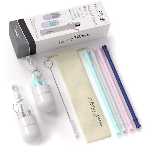 Bring your renuSTRAW anywhere thanks to the sleek recycled case and collapsible design. The straws themselves are made out of temperature-safe, anti-crack silicone that, when expanded, allows you to sip your favorite drinks without harming the environment. The set even comes with brushes that allow you to clean inside the straws.