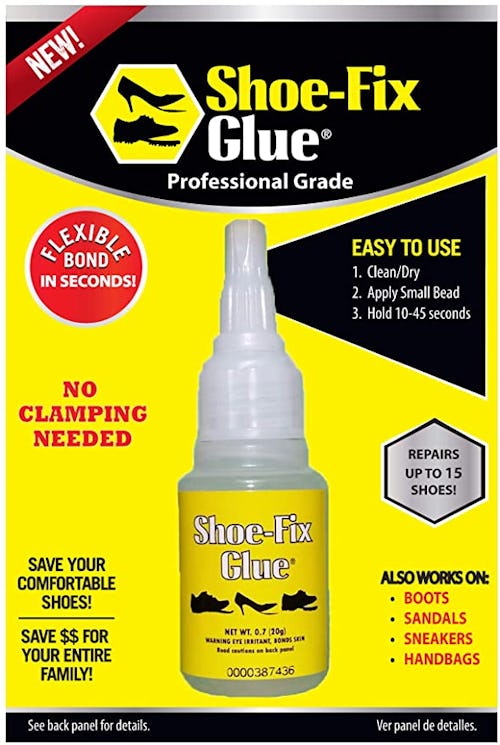 Don't throw away your favorite shoes just because the soles are flopping around — simply apply this glue that re-adheres loose parts in just seconds. It's suitable for use on almost all materials, including vinyl and rubber, and the flexible bond won't crack in the cold or melt in the heat. Simply apply and hold pressure for a few seconds and your shoe is fixed — no cobbler needed.