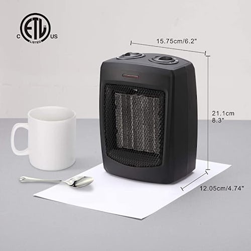 When there’s a chill in the air, warm up your favorite spaces with this handy electric space heater. This ceramic heater is small but powerful, and it heats up within two seconds. What’s more, there are plenty of built-in safety features, like no open coils, automatic shut-off, and a tip-over switch. Plus, a built-in handle lets you move it from room to room with ease, and you can choose between black and gray.