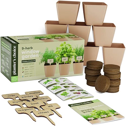 Always have the right herbs on hand with this 40-piece herb garden kit is packed with everything you need to grow a thriving herb garden in your own home, including seeds, soil discs, grow bags, markers, and more.
