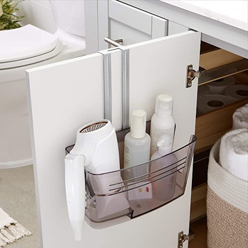 Use this basket organizer to keep things organized and readily accessible without taking up much space. This organizer is easy to use because it hooks over cabinet doors. Use it in the kitchen or the bathroom for everything from cleaning supplies or toiletries.