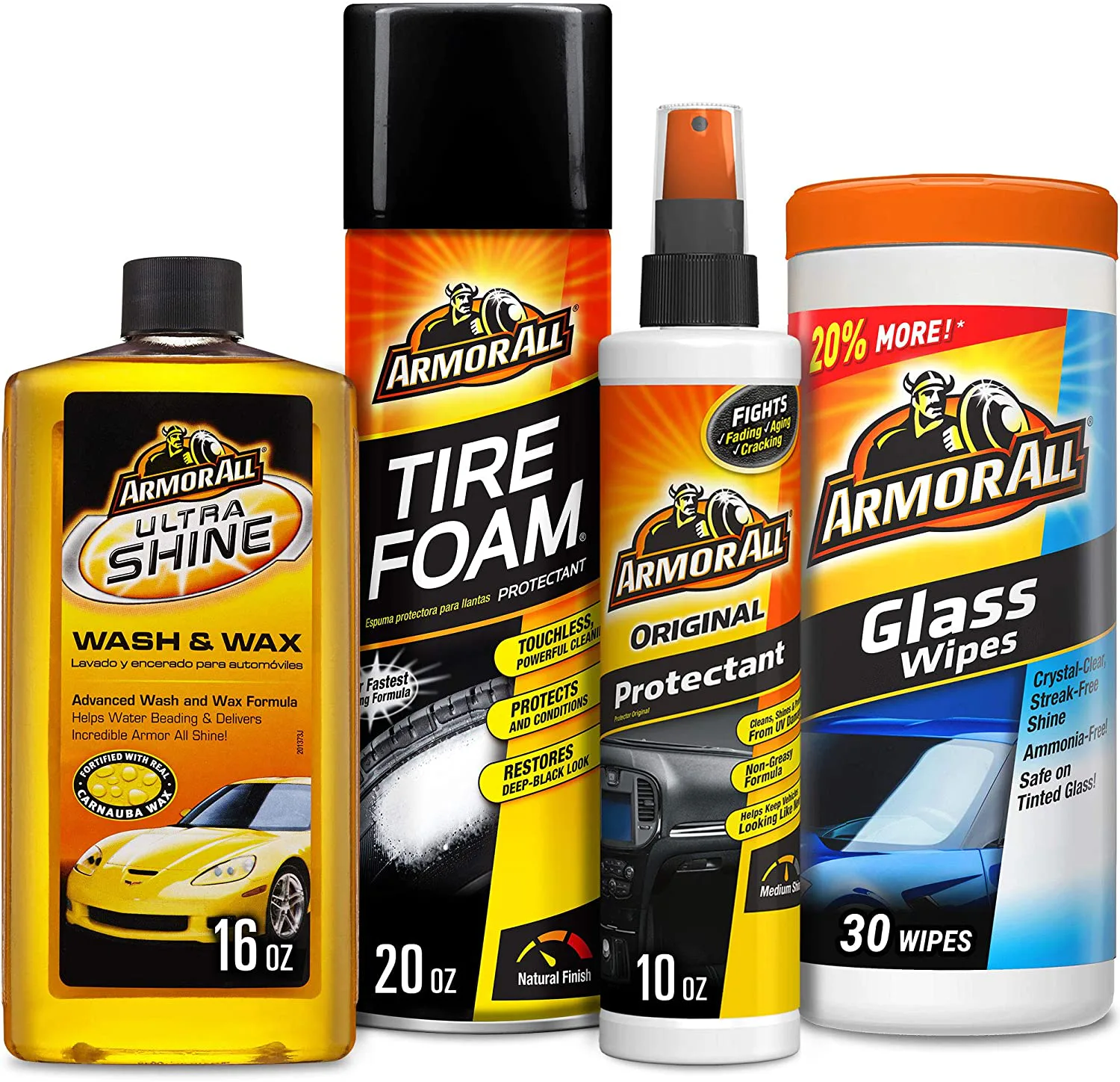 When your vehicle is dirty, don't you just feel kind of dirty, too? Take care of that feeling with this at-home car wash kit. It includes everything you need to clean both the inside and the outside of your vehicle: glass wipes, a wash and wax formula, tire foam, and protectant to keep everything looking like new. Pick up a wash mitt and drying towel set to complete the job.