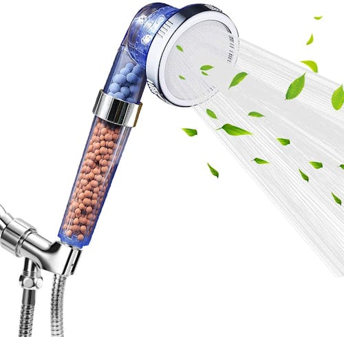 With smaller holes set in a dense pattern, this showerhead creates the feeling of increased water pressure while actually using less water, and reviewers say it works like "magic". It has three settings — jet, massage, and rainfall — and the interior filtering stones work to soften hard water and remove impurities. It's easy to install on any standard size shower arm.